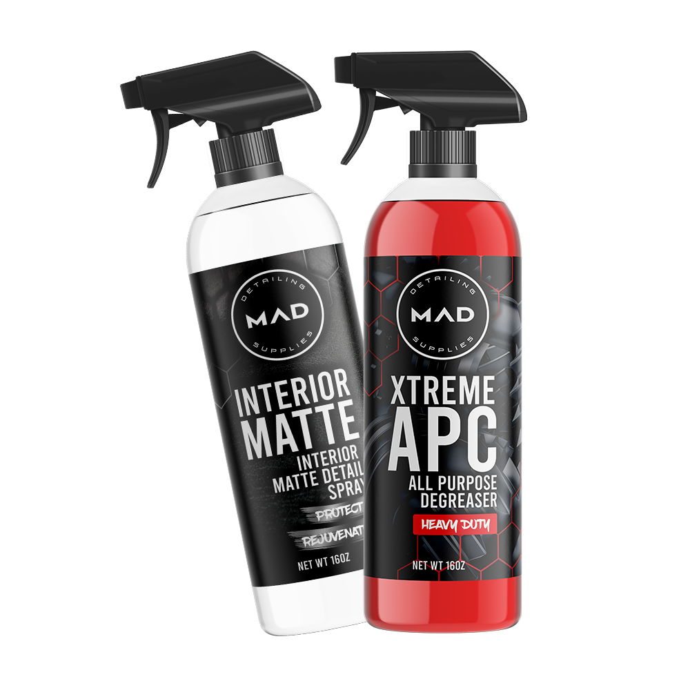 This Interior Detailer is formulated to be anti-static and UV resistant to protect your interior from fading caused by UV rays. INTERIOR MATTE is safe for use on interior vinyl, plastic, and leather surfaces. This easy to use detail spray cleans light dirt & dust while leaving behind a saturated matte finish.
